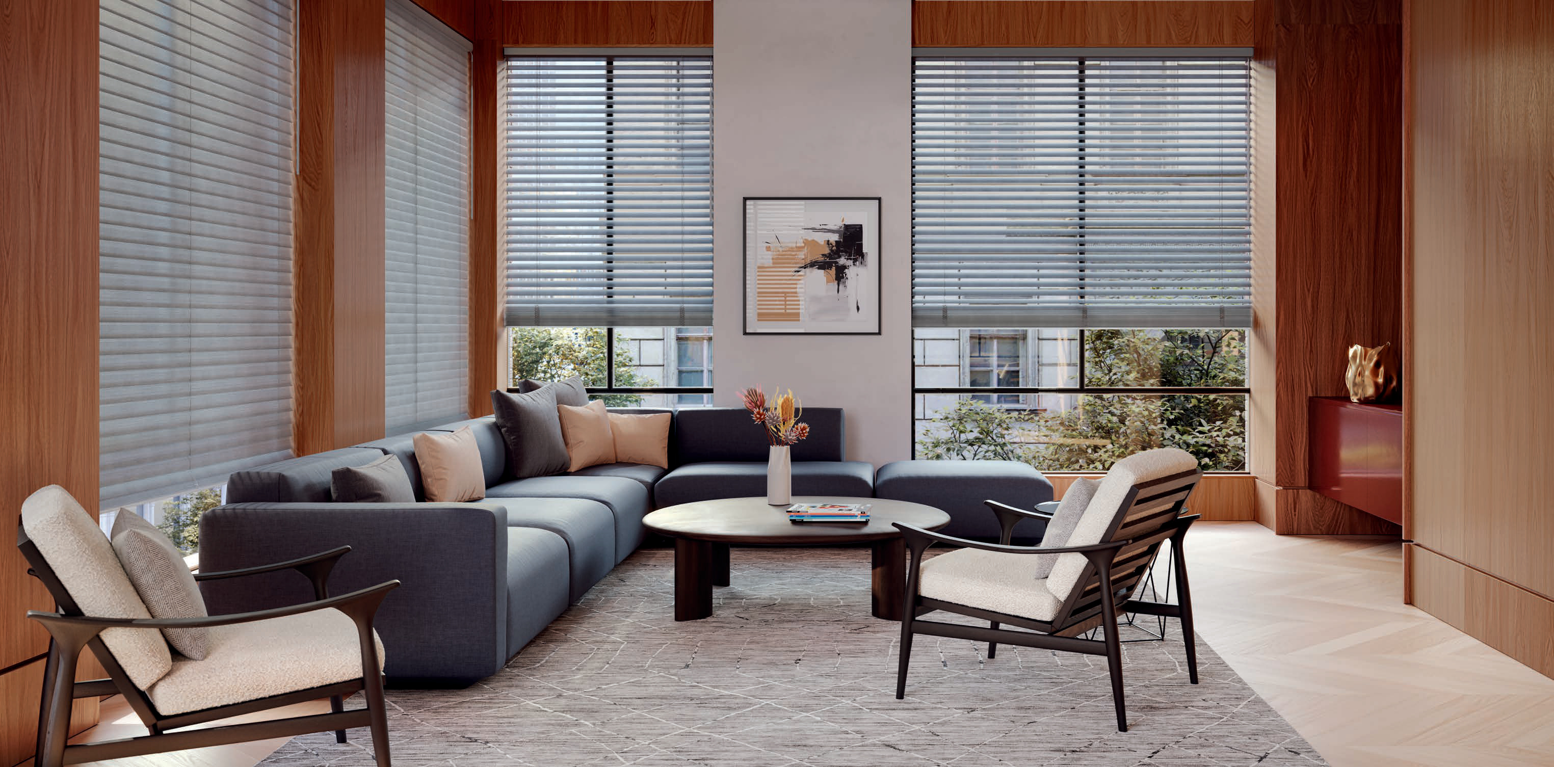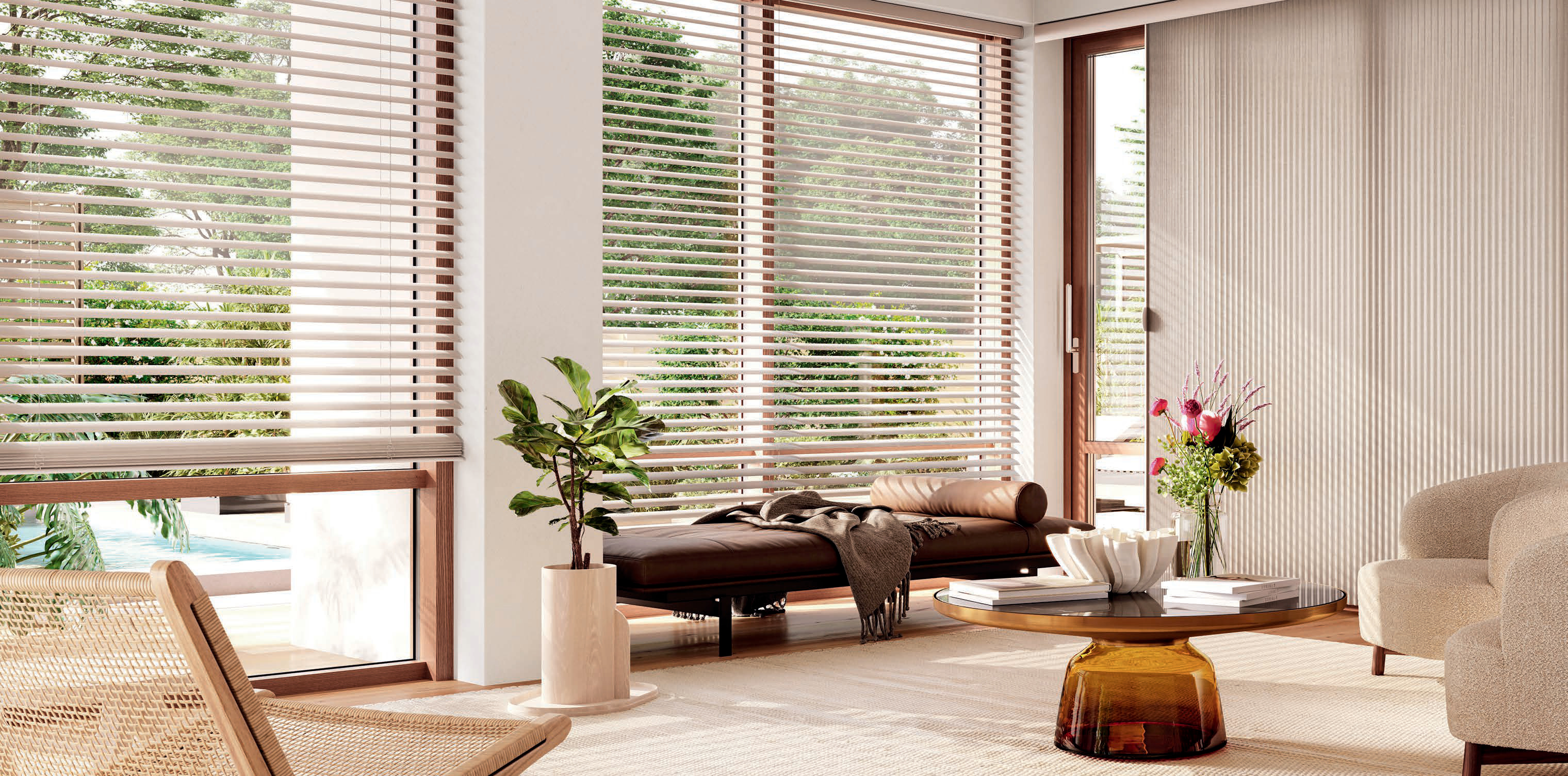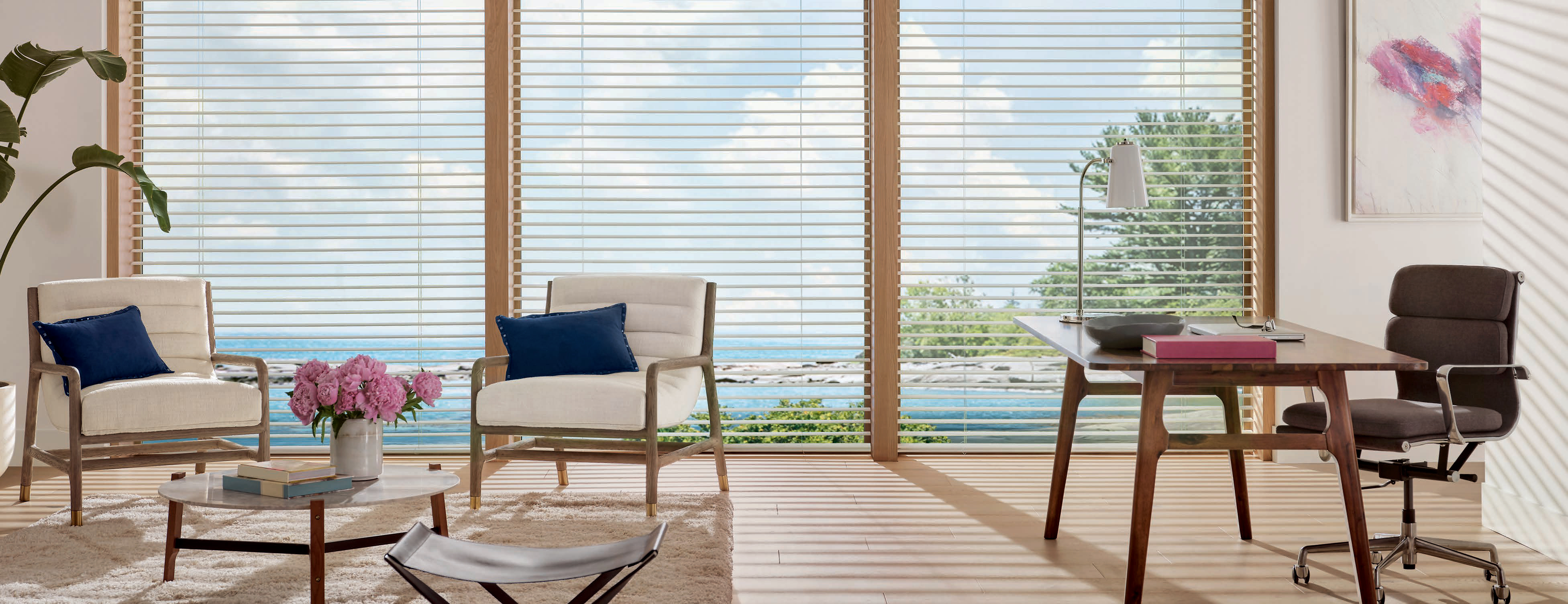 The wider widths of Aria™ blinds make them distinctly different—and perfect for extra large windows.