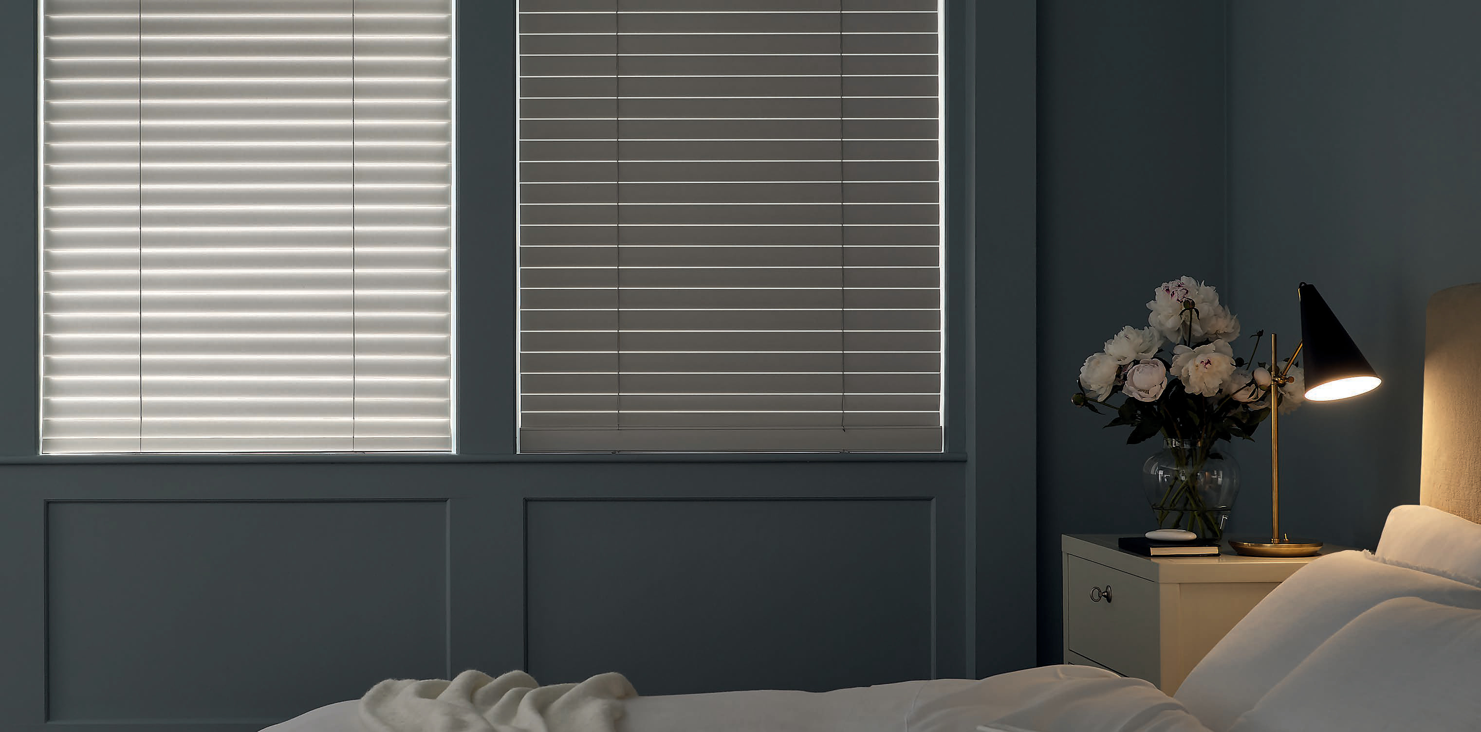Two opacities in one: Tilt slats down for dimming and up for room darkening.