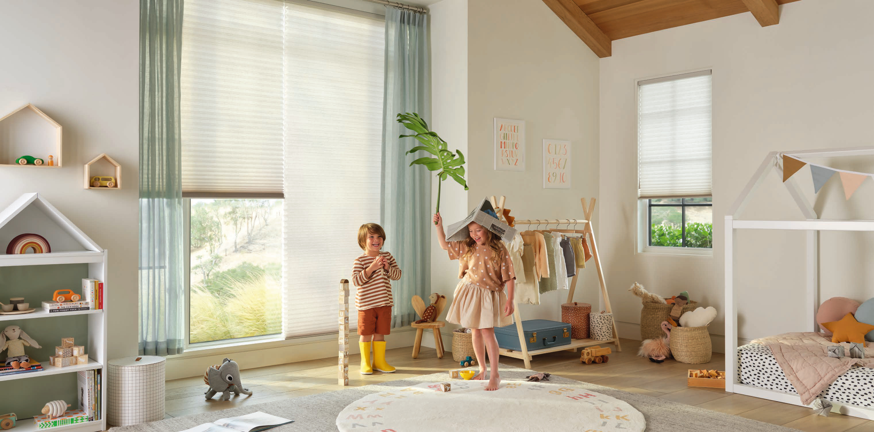 Layer your Duette® shades with coordinating Design Studio™ drapery, available in an array of on-trend colors, patterns and exclusive designs.