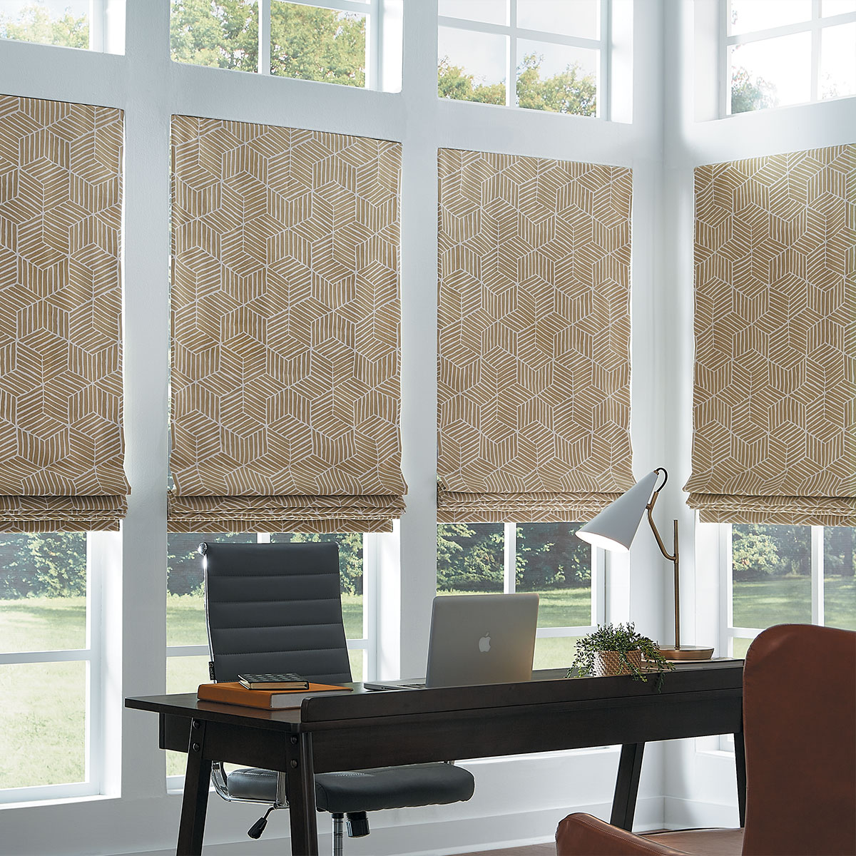 Battens sewn into the back of the shade for crisp folds that stack in the opposite direction — a refined, dimensional silhouette.