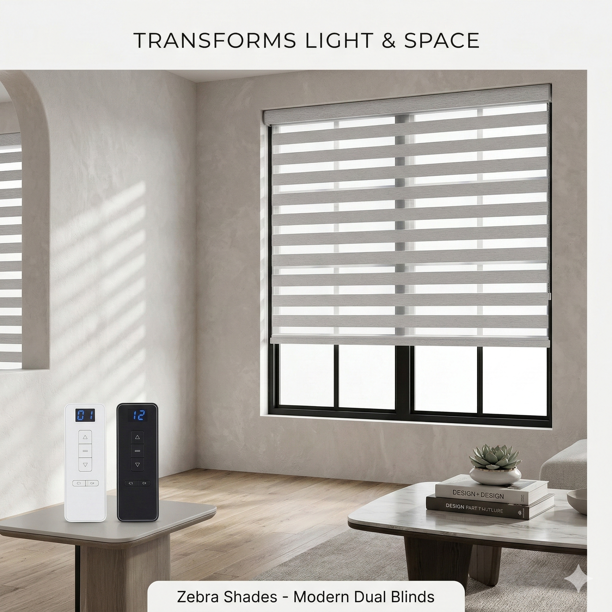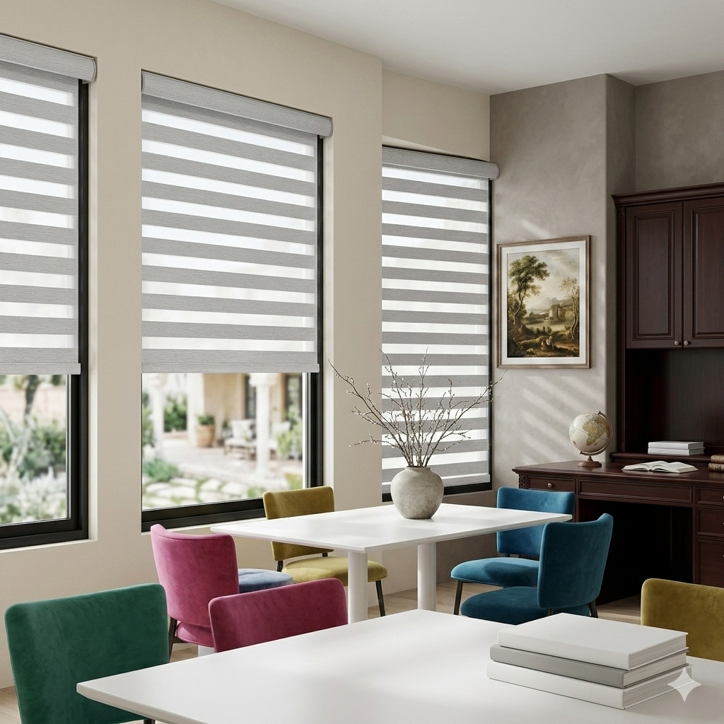 Dual-layer zebra shades — designed for modern living.