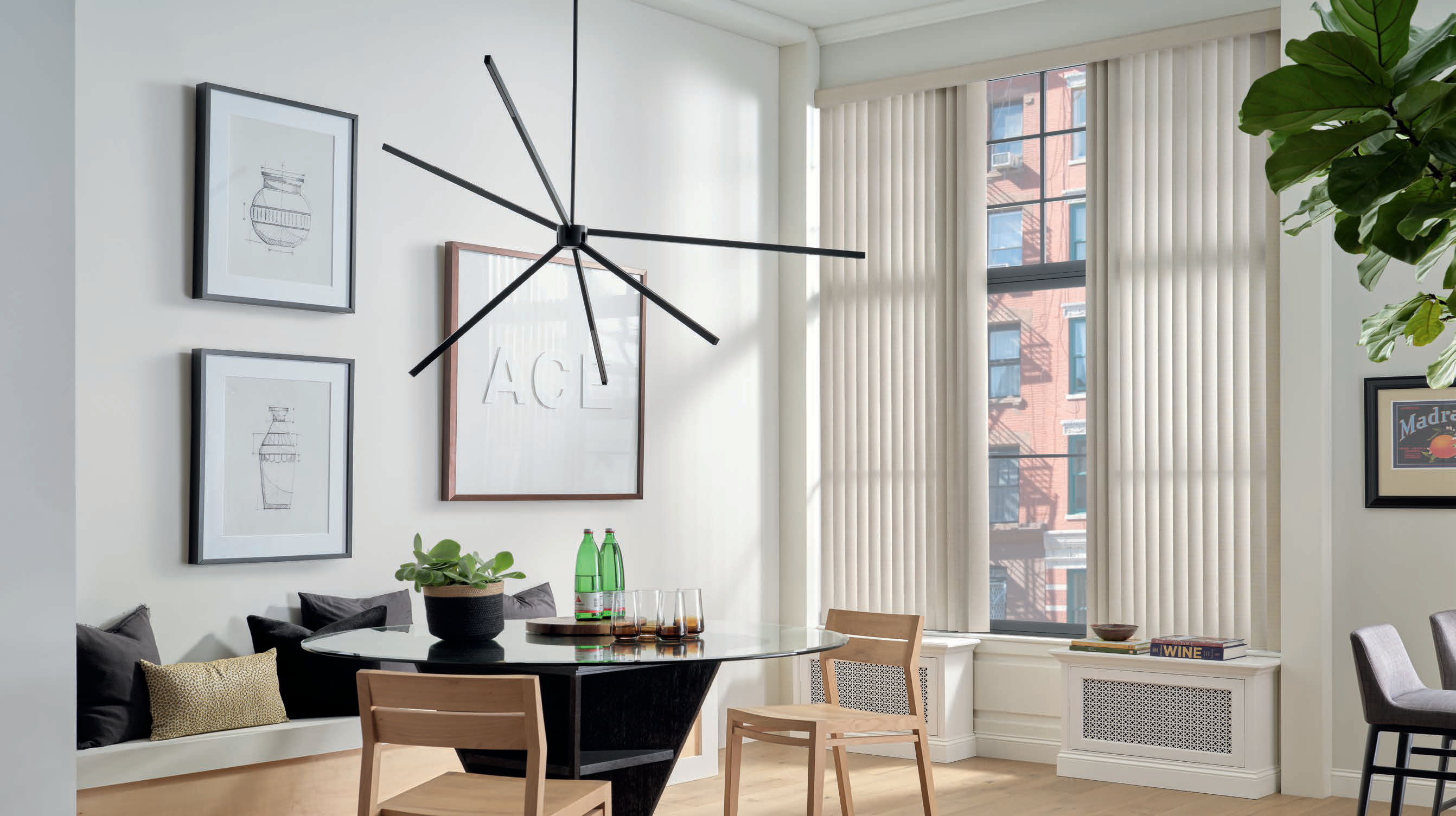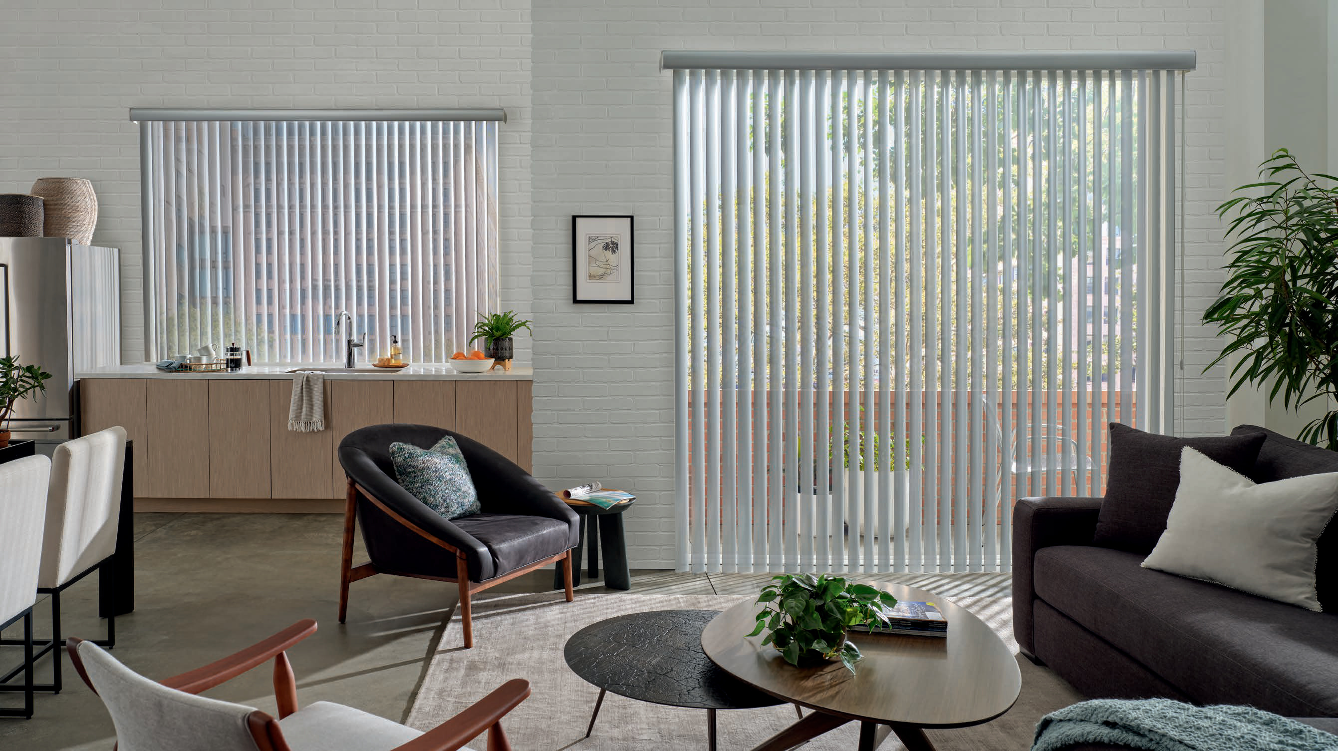 Vertical Blinds provide minimal stack when open, with vane tilt options to customize the light in any room while maximizing the view.